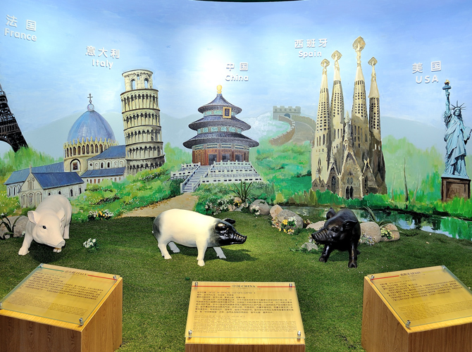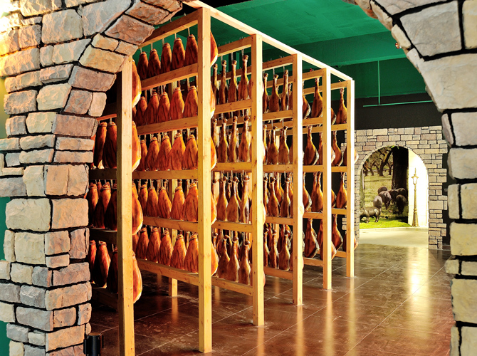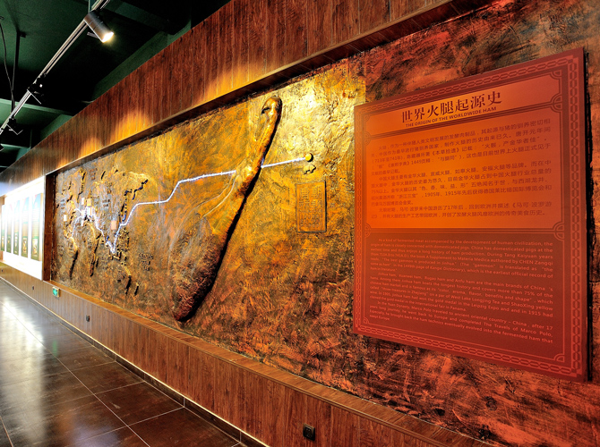 世界火腿博覽館是一個以世界火腿為主題的博覽館,用歷史-地域-工藝-文化為線索,通過展板、照片、聲光和布景等手法,翔實(shí)介紹了中國金華火腿、西班牙伊比利亞火腿、意大利帕爾瑪火腿、法國科西嘉火腿和巴黎火腿、美國的鄉(xiāng)村火腿等世界知名火腿的歷史人文,消費(fèi)習(xí)俗、制作工藝、火腿美食等。